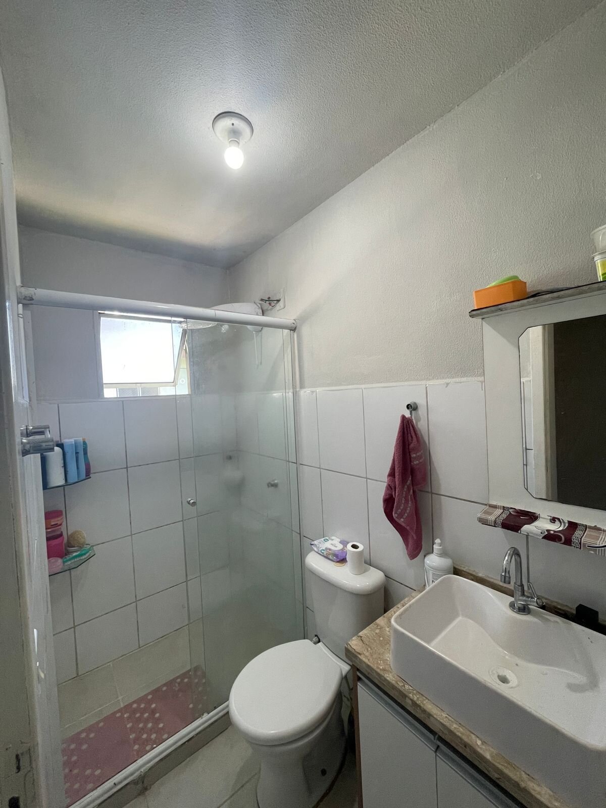 Banheiro social com box blindex e armários